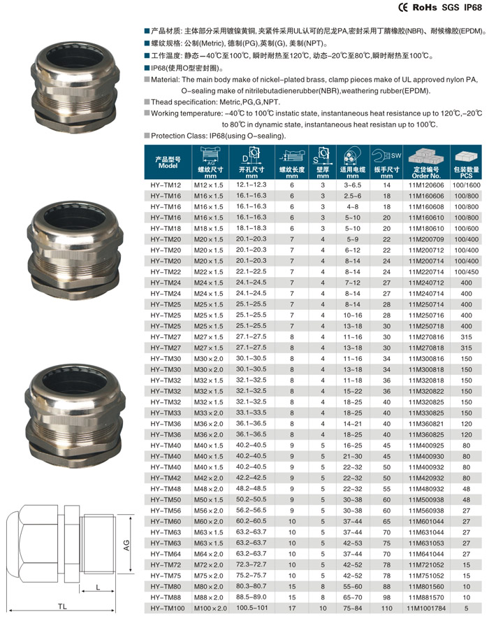 | 金屬固定電纜防水接頭HY-TM型 |